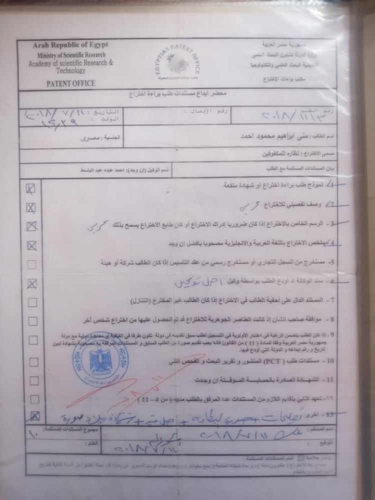 أعلنت جامعة جنوب الوادي، أن  الطالبة مني ابراهيم محمود ، بالفرقة الثانية كلية التربية الرياضية ، التي كرمها  الدكتور يوسف غرباوي،  رئيس جامعة جنوب الوادي  ، كرعن الابتكار المقدم منها وهو نظارة للمكفوفيين، قدمت المستند المرفق الذى يؤكد تقدمها للحصول على براءة اختراع للنظارة منذ العام ٢٠١٨م..