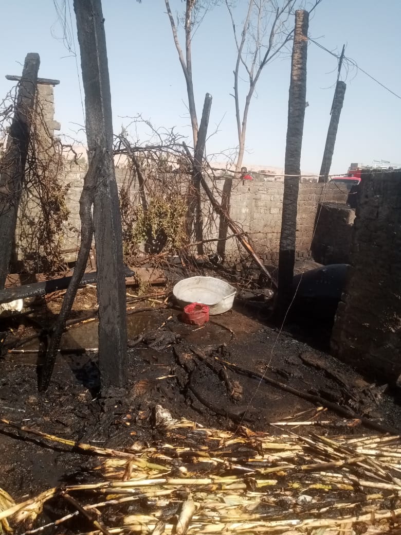 انتقل على الفور رجال الشرطة وتبين حريق في منزلين ملك لكل من العارف خ ع، وأسفر الحريق في حوشه عن نفوق عدد 2 رأس جاموس كبيرة، وجاموس صغير، وفرس كبير، بالإضافة إلى كمية من التبن، وصلاح خ ع، حيث تسبب الحريق في إصابة عدد 2 بقرة كبيرة، واحتراق كمية من الغلال والردة.