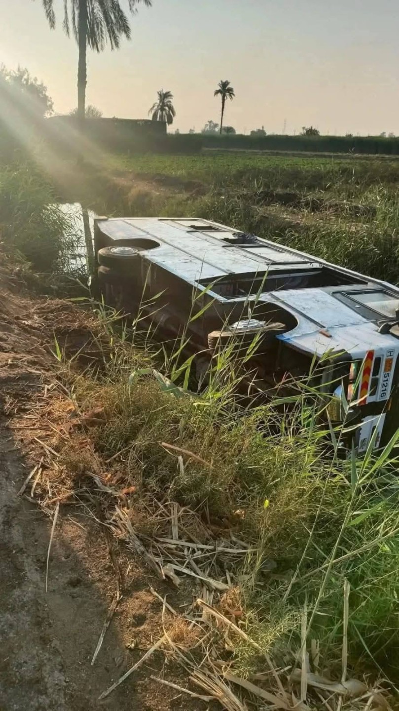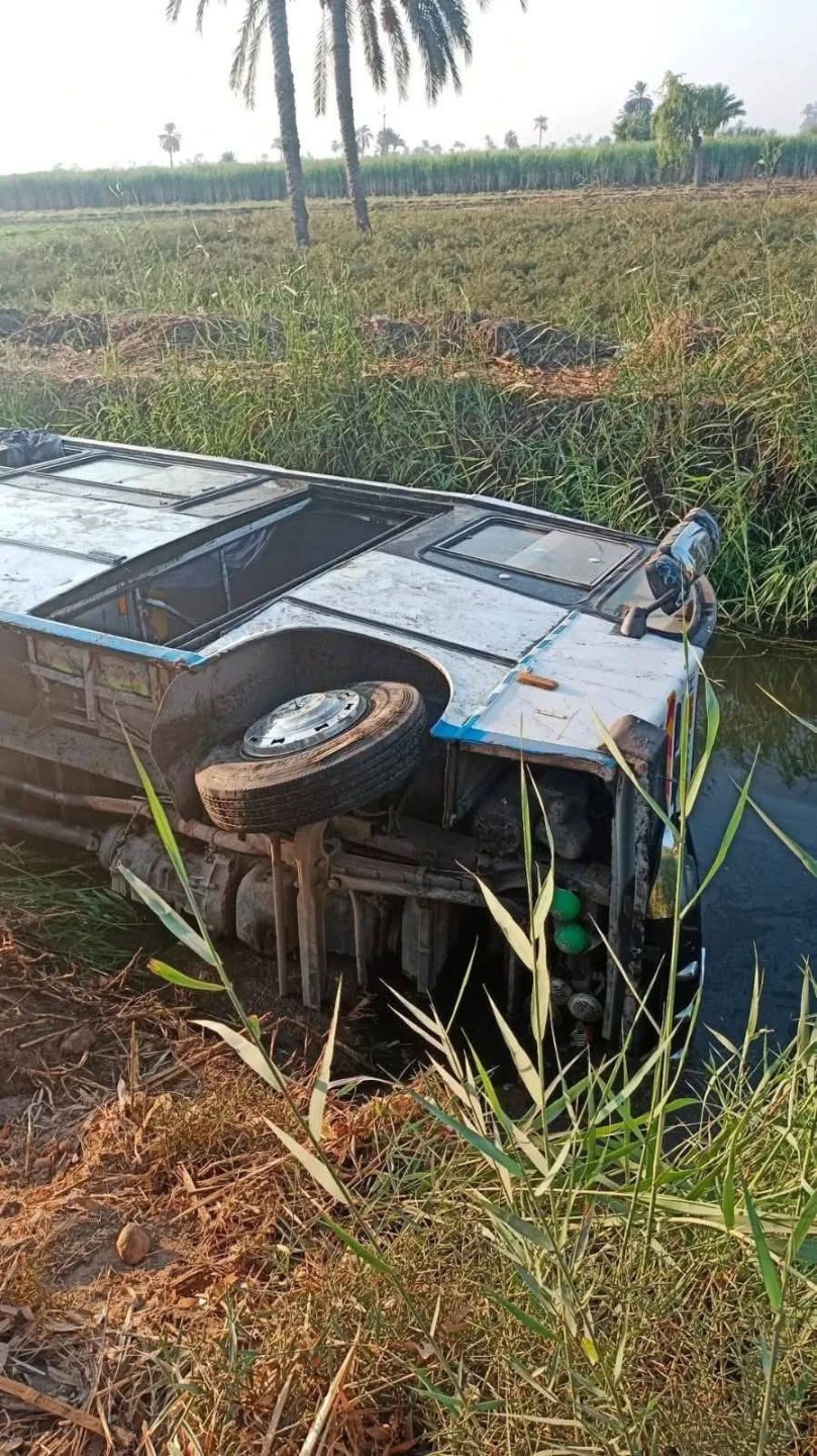 إصابة مشرف و5 تلاميذ في انقلاب أتوبيس روضة أطفال في ترعة بـ المنيا