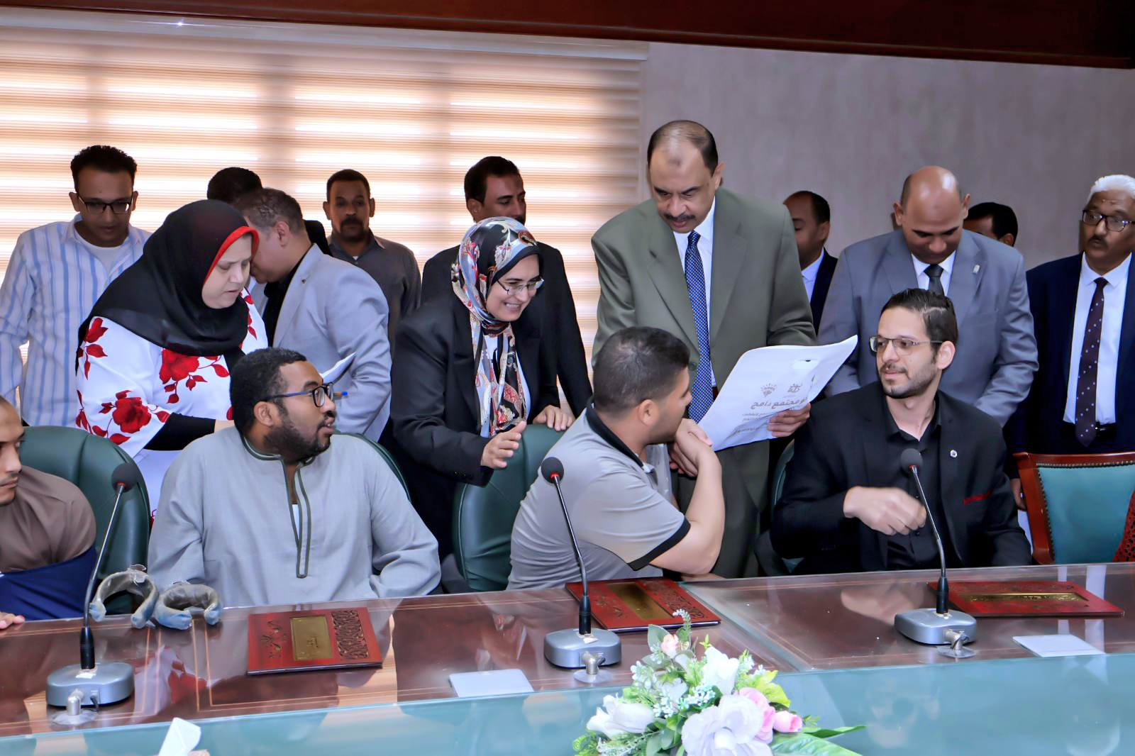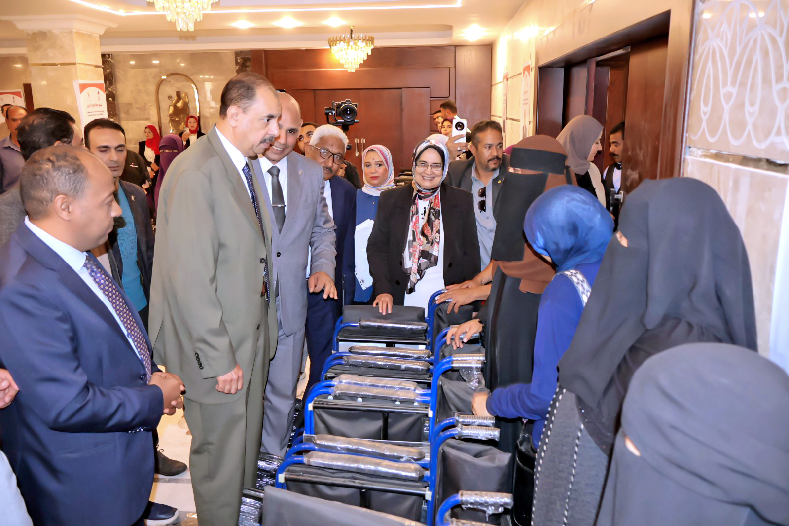 ضمن مبادرة ”أسرتي قوتي” .. محافظ سوهاج يسلم 16 عقد عمل و 30 كرسي متحرك للأشخاص ذوي الإعاقة