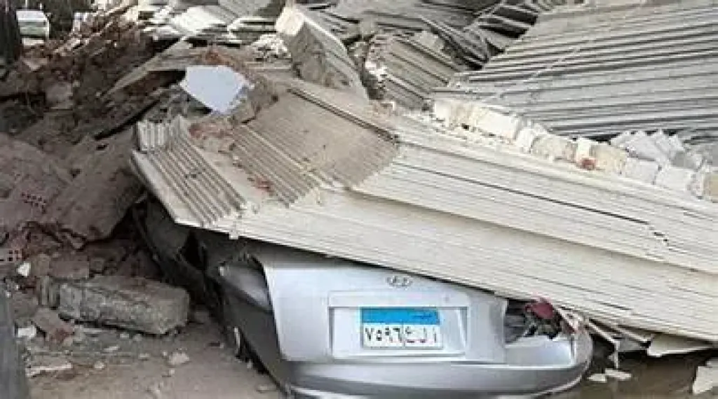 انهيار حائط شقة في الهرم يتسبب في تهشم 4 سيارات دون إصابات