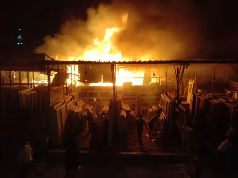 ألسنة اللهب تلتهم ”مؤسسة الزكاة”.. ليلة مرعبة في مخازن الأخشاب وقوات الإطفاء تسابق الزمن