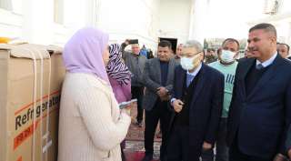 محافظ الفيوم يتفقد قافلة جمعية صلاح الدين لتوزيع المواد الغذائية على الأسر...