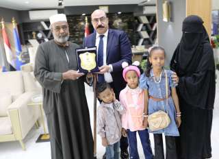 محافظ أسوان يكرم أسرتي عاملين وافتهم المنية عرفاناً بتفانيهم فى عملهم بجد...
